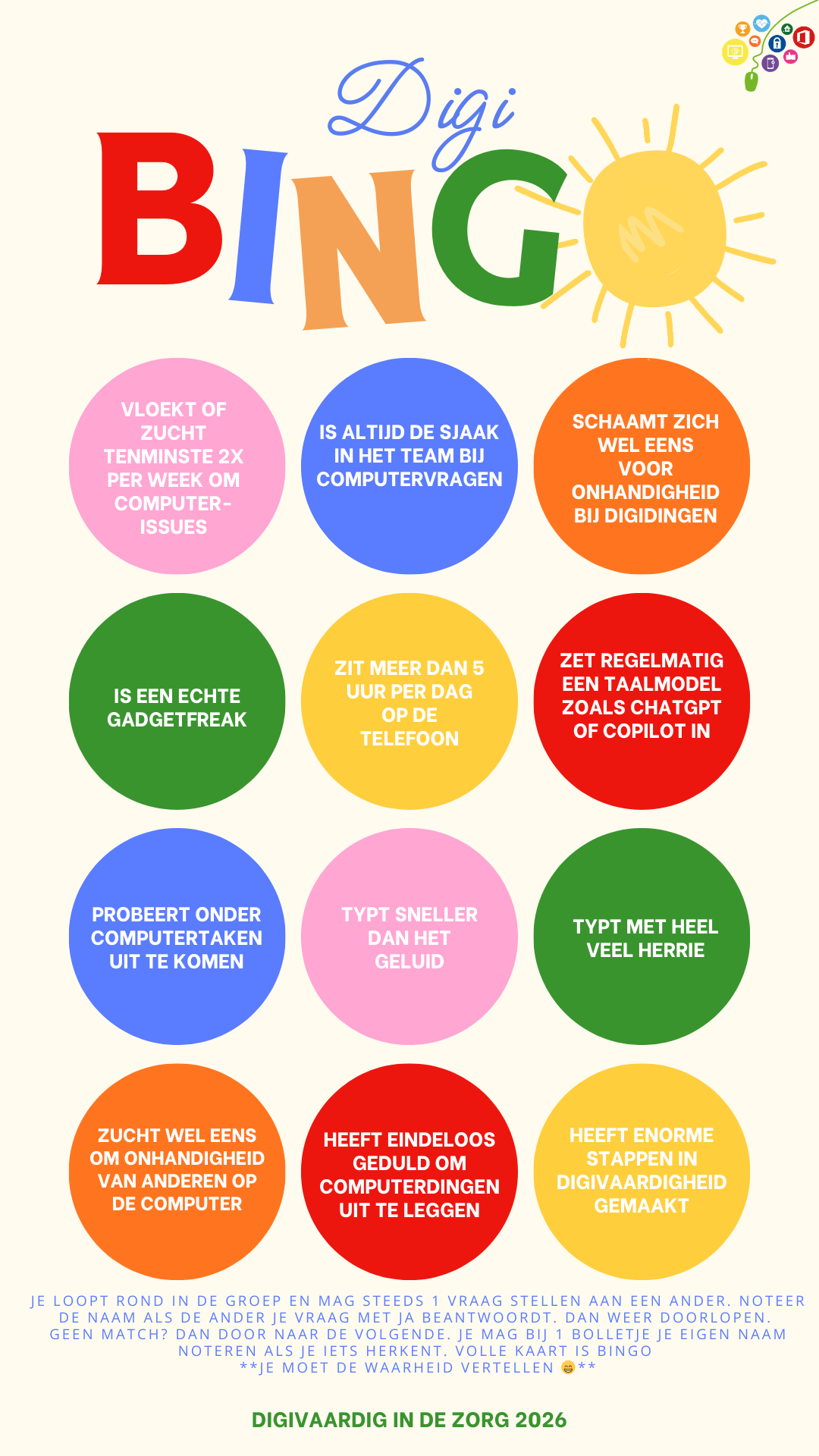 Onze partner Digivaardig in de Zorg maakte een Digibingo. Doe je mee?